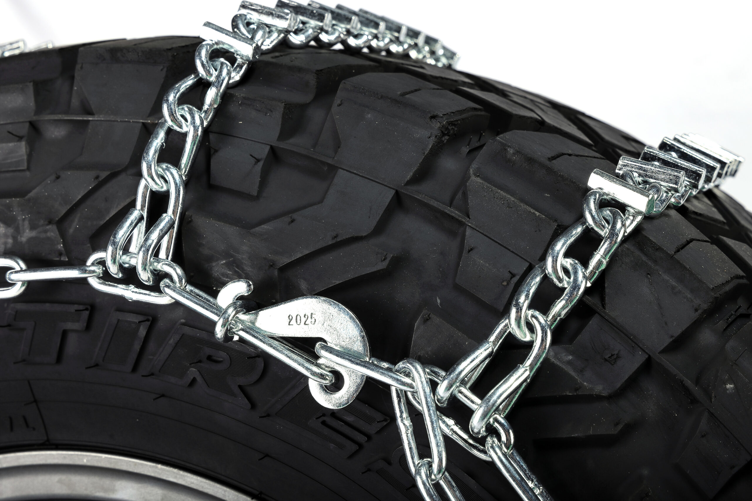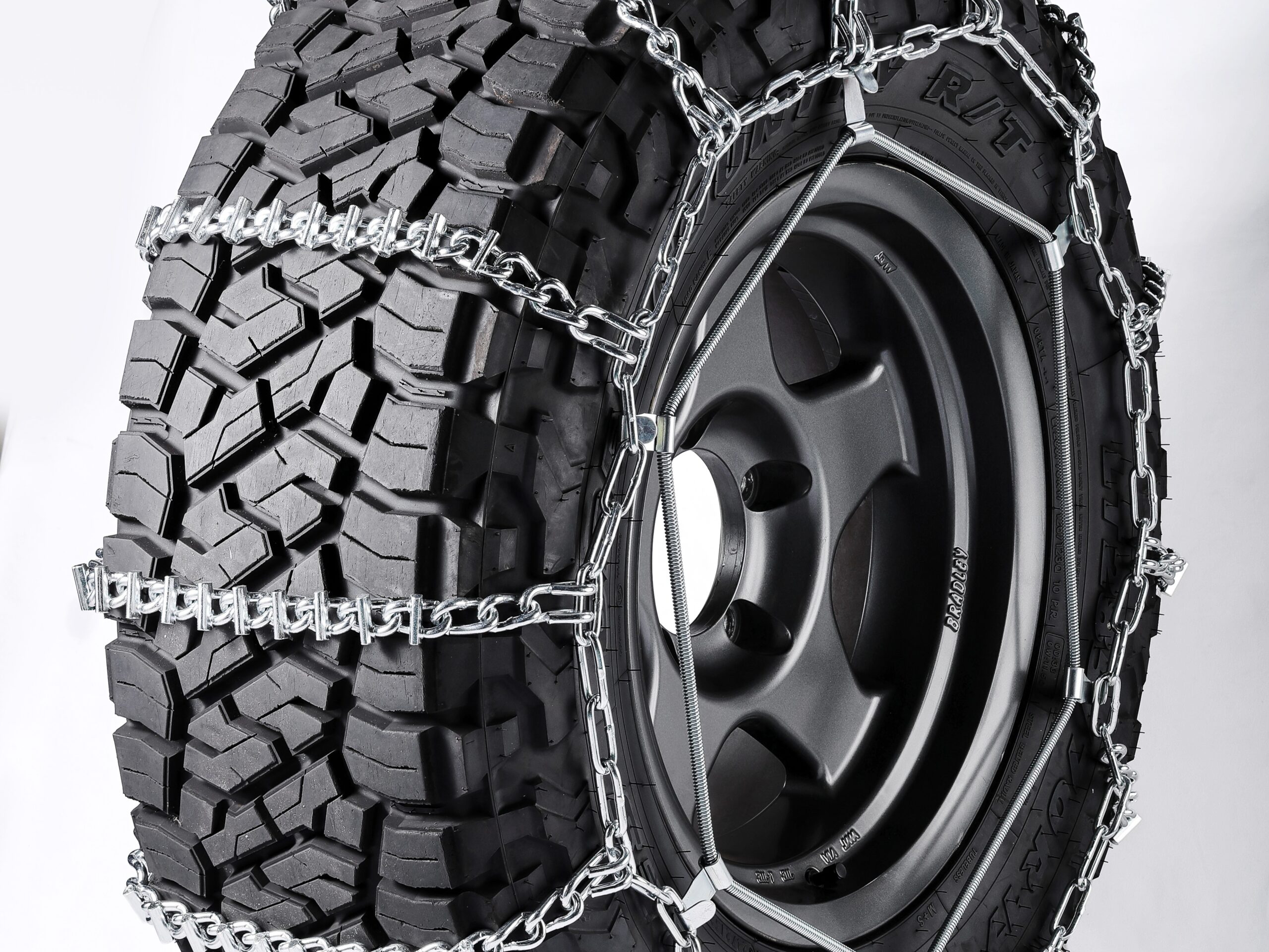 装着方式には、両側板フック式を採用。これは大型トラック用チェーンにも使用されている方式であり、確実な装着を可能にすることで、