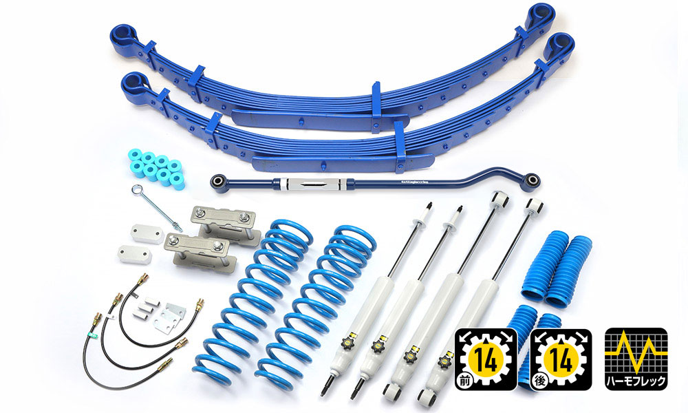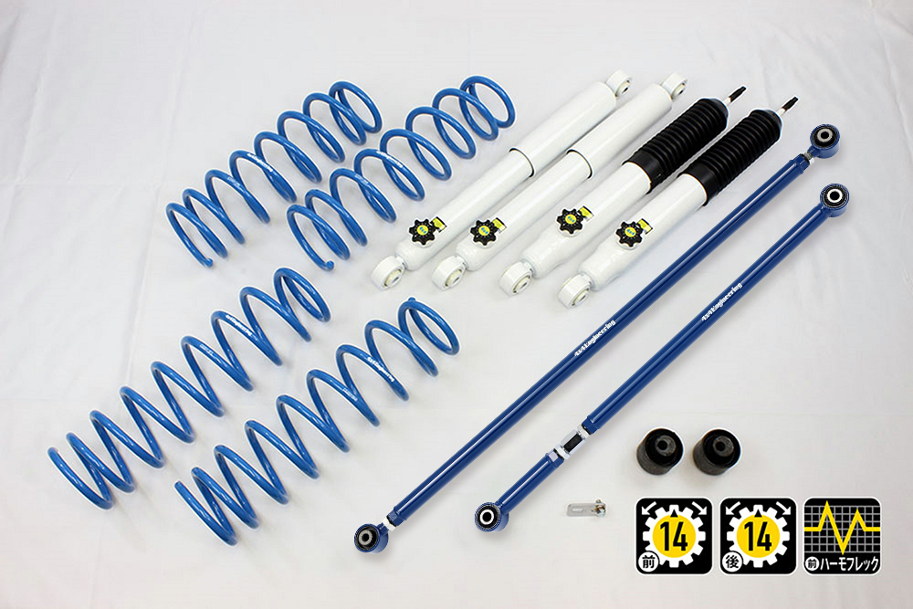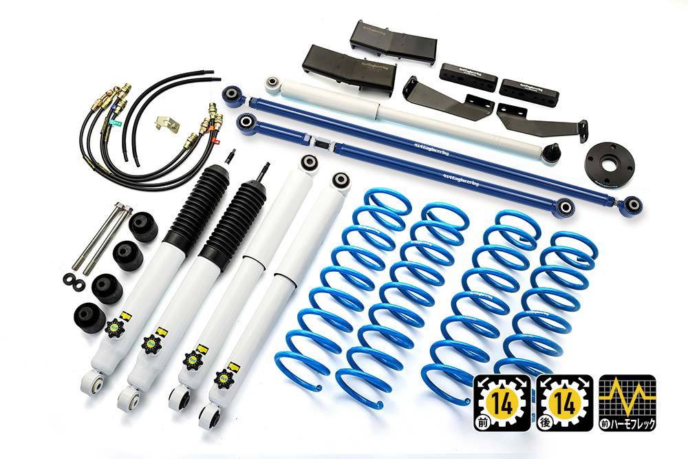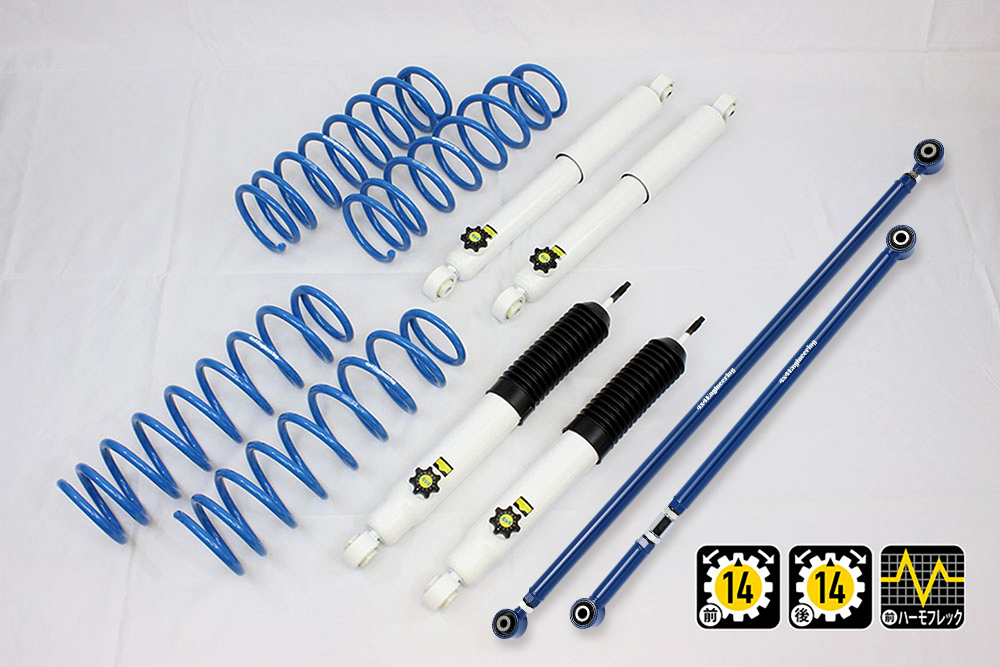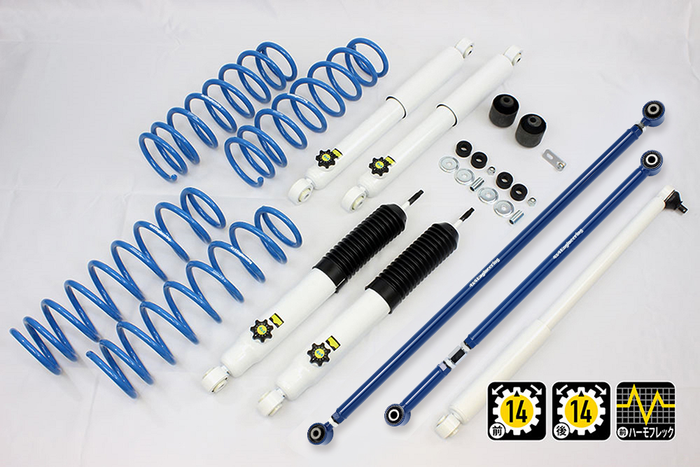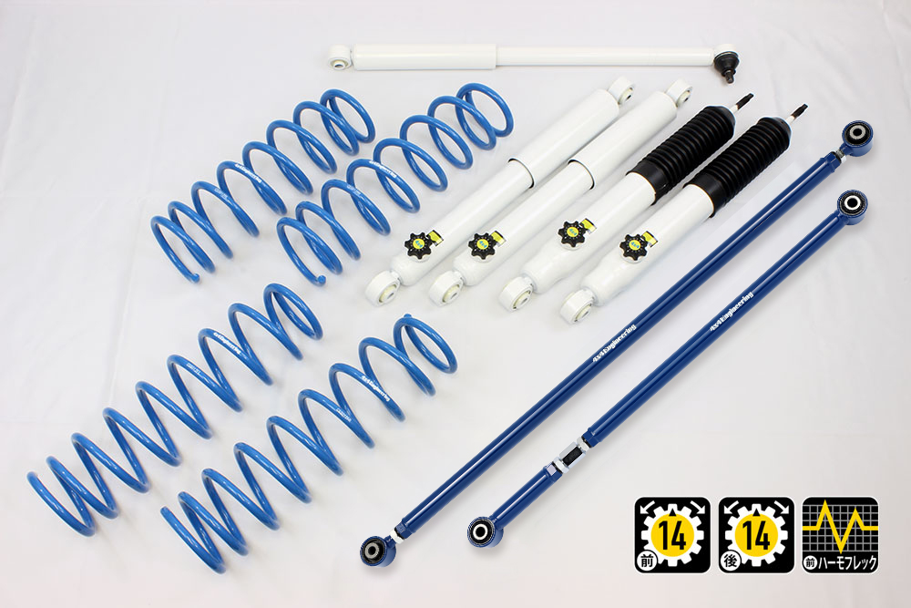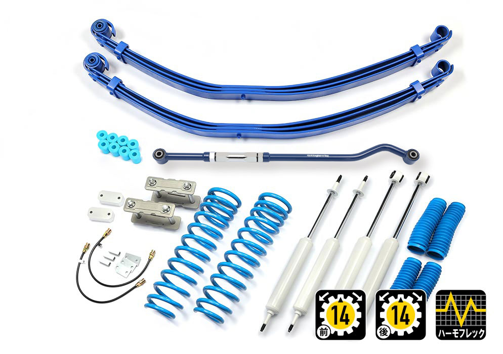 コイルもしくはリーフ、ショックアブソーバー、ブーツ等、サスペンションのリフト量変更に必要なパーツをひとつにまとめたパッケージをご案内しています。