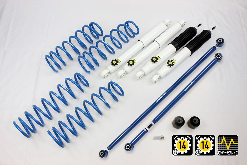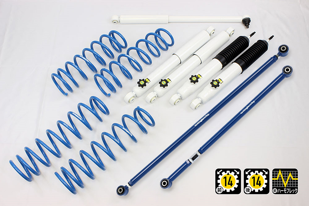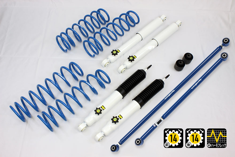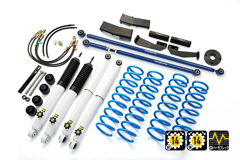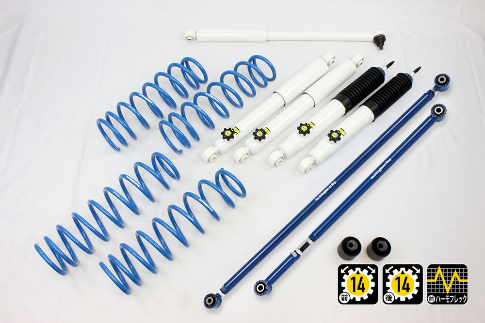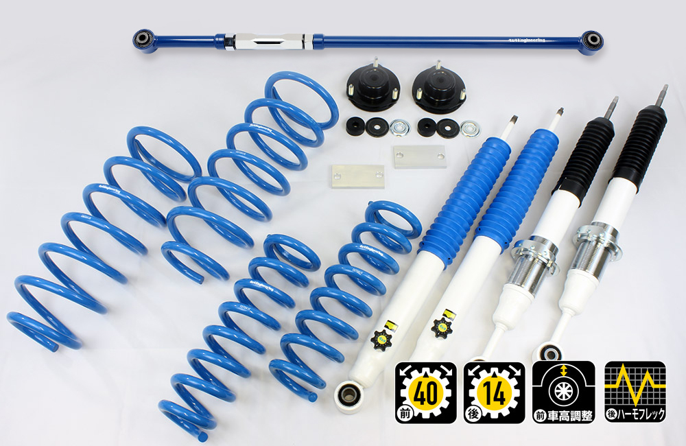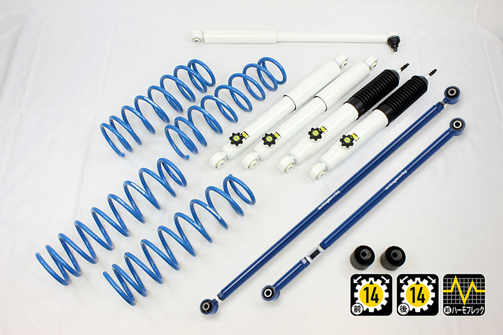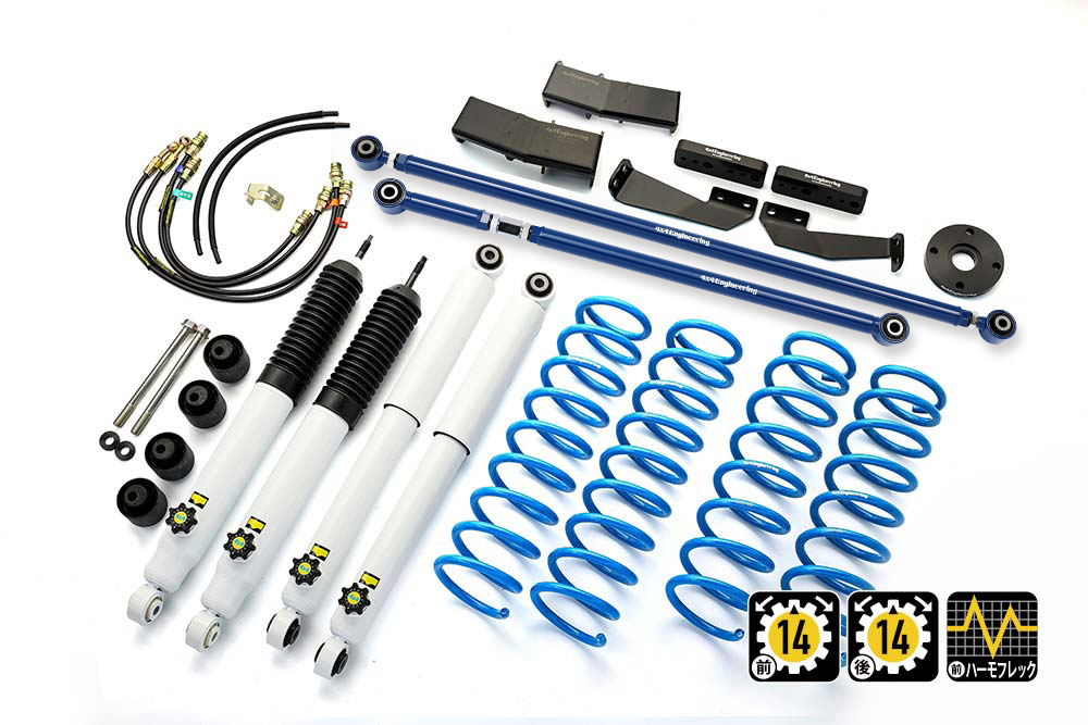コイルもしくはリーフ、ショックアブソーバー、ブーツ等、サスペンションのリフト量変更に必要なパーツをひとつにまとめたパッケージをご案内しています。