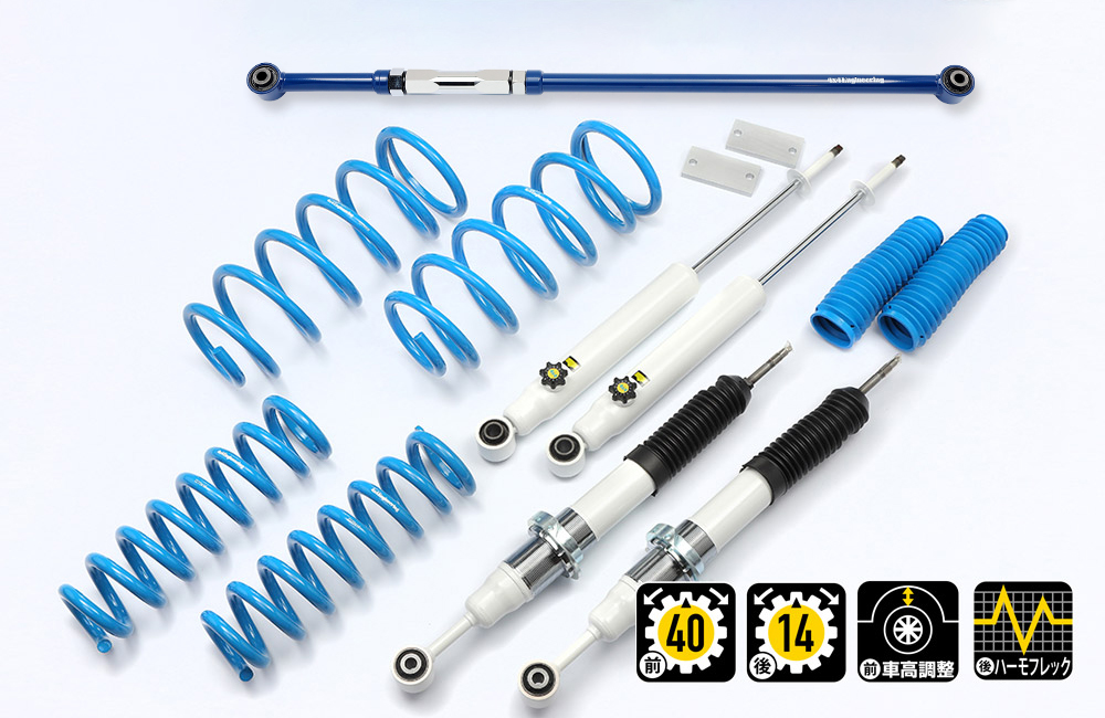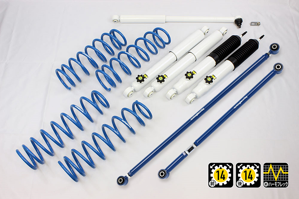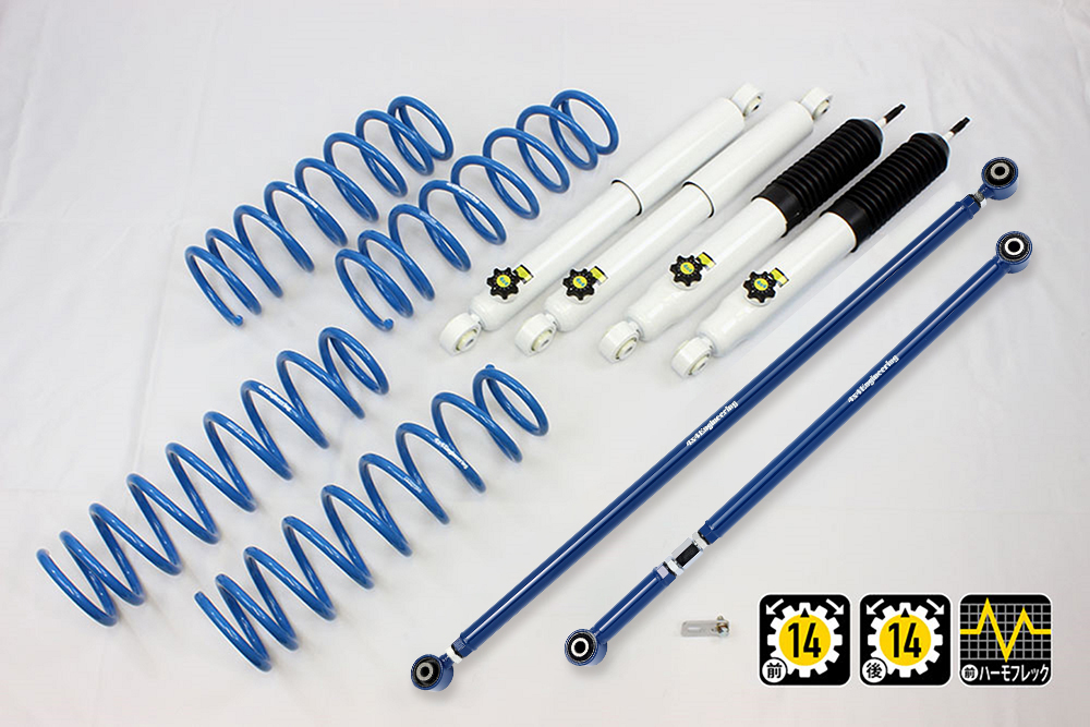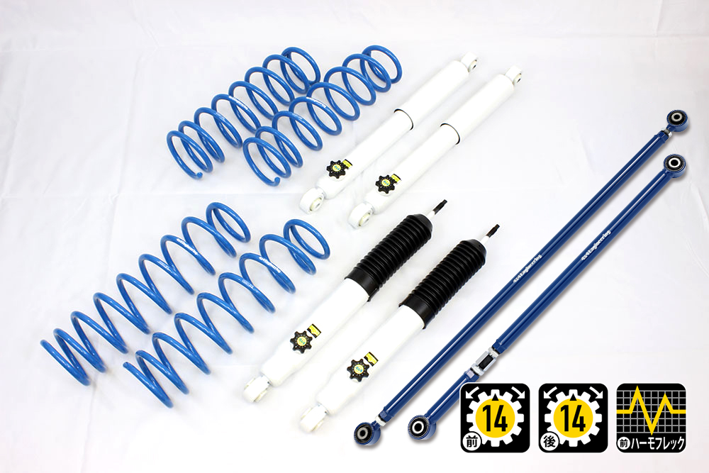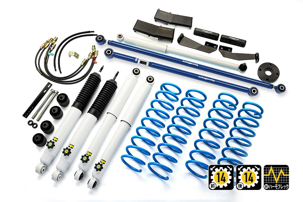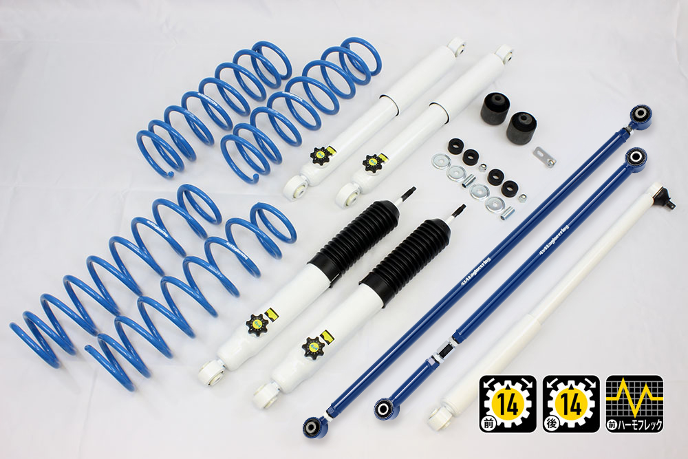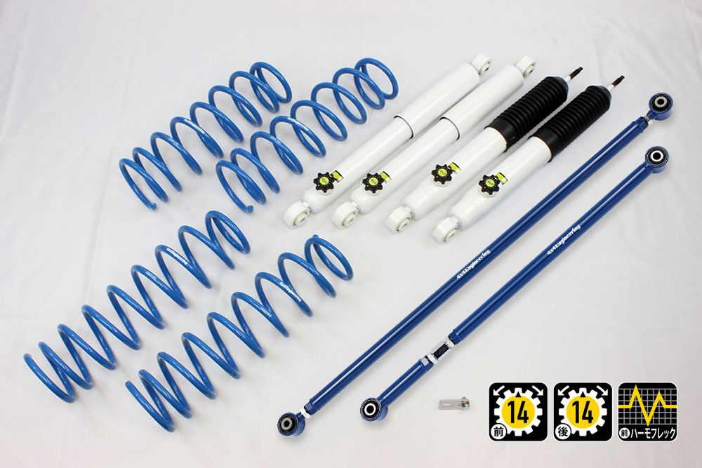 コイルもしくはリーフ、ショックアブソーバー、ブーツ等、サスペンションのリフト量変更に必要なパーツをひとつにまとめたパッケージをご案内しています。